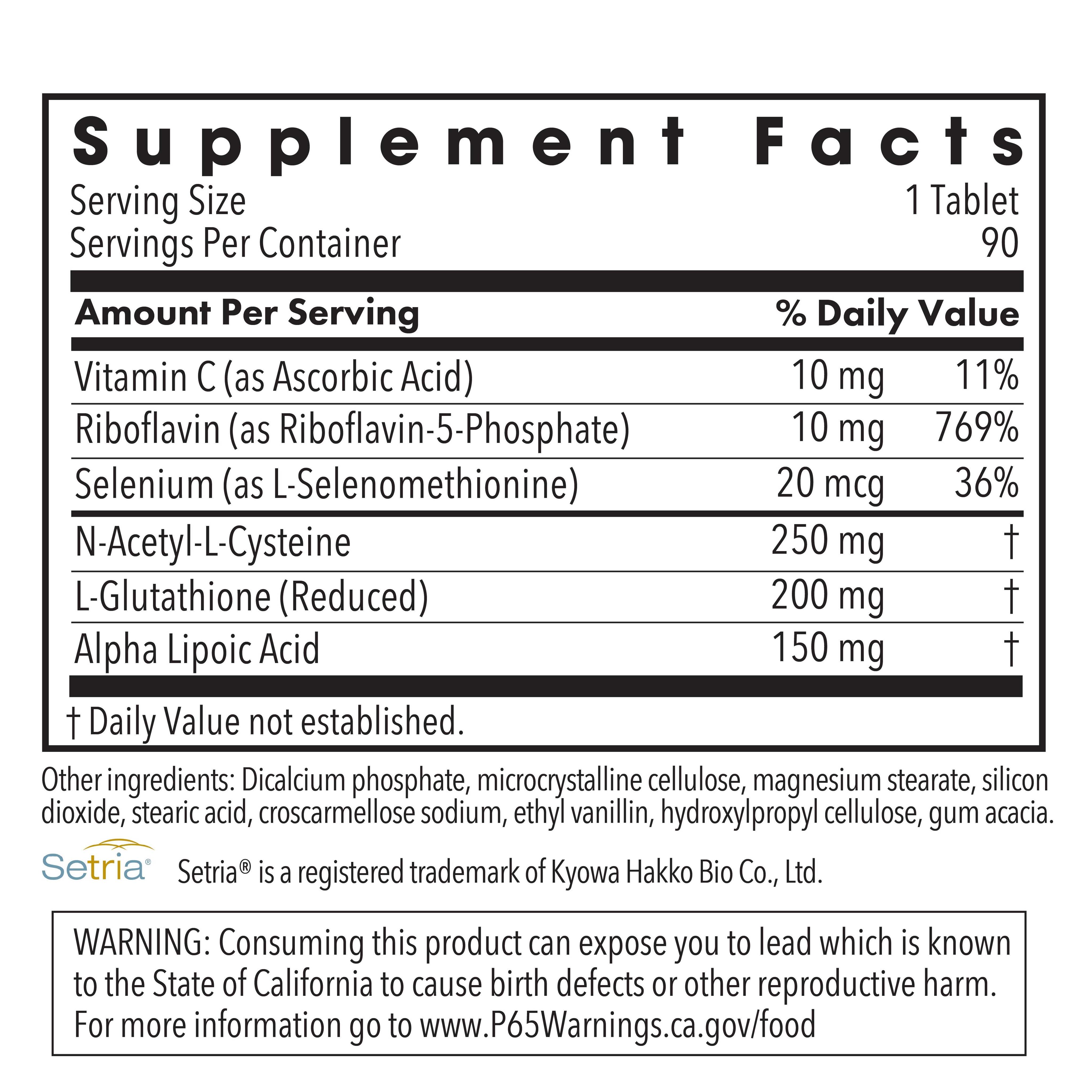 Глутатион Комплексная добавка L-глутатиона (восстановленного), N-ацетил-L-цистеина и липоевой кислоты с вспомогательными питательными веществами. ThioDox® содержит питательные вещества, которые поддерживают детоксикационную функцию печени, выработку глутатиона и антиоксидантную активность.
