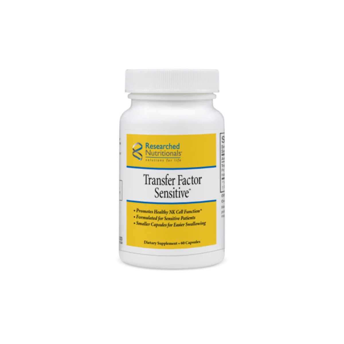 Transfer Factor SensitiveTM предоставляет расширенную комплексную формулу иммунной поддержки, способствующую здоровой естественной активности клеток-убийц. Продукт был разработан для чувствительного пациента; активным ингредиентом является Transfer Factor PurePlexTM - сочетание чистого фактора переноса и фракций молозива. Размер капсулы меньше, и для молодых пациентов, которые открывают капсулу, вкус почти нейтральный.