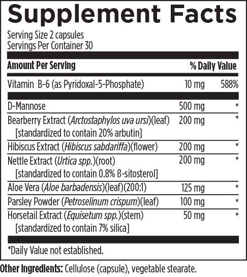 UT Synergy™ содержит Hibiscus sabdariffa - уникальный компонент, разработанный специально для поддержания здоровья мочевыводящих путей.* Hibiscus sabdariffa - это экстракт вида Hibiscus, который отличается высоким содержанием некоторых органических кислот и полифенолов, особенно флавоноидов и проантоцианидинов. Эти соединения, как было показано, обладают ингибирующими микроорганизмы и антиадгезивными свойствами.* Кроме того, эта формула обладает мягкими мочегонными свойствами для поддержания здоровой функции почек.* Рекомендации по применению: принимайте по 2 капсулы в день или по указанию вашего лечащего врача.* Эти заявления не были оценены Управлением по контролю качества пищевых продуктов и лекарственных средств. Данный продукт не предназначен для диагностики, лечения, излечения или профилактики каких-либо заболеваний.