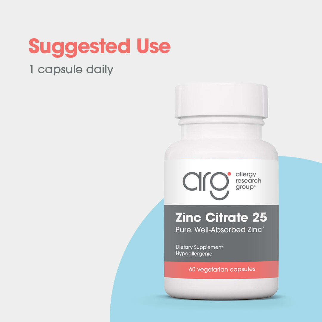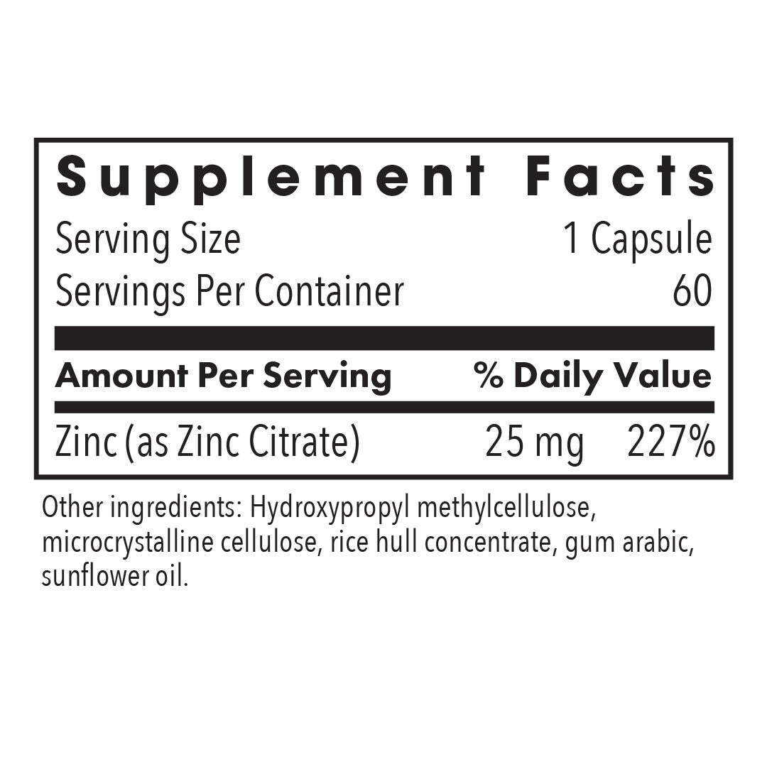 Цитрат цинка 25 мг представляет собой биодоступную форму цинка для поддержки иммунной функции, репродуктивного здоровья и путей детоксикации печени. * Идеально подходит для людей с повышенными физиологическими потребностями, эта форма усваивается лучше, чем оксид цинка.